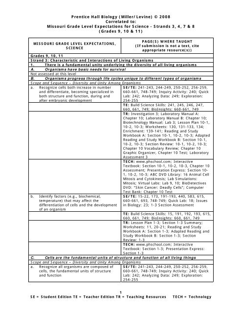 Prentice Hall Biology Miller Levine A C 2008 Correlated To Pearson